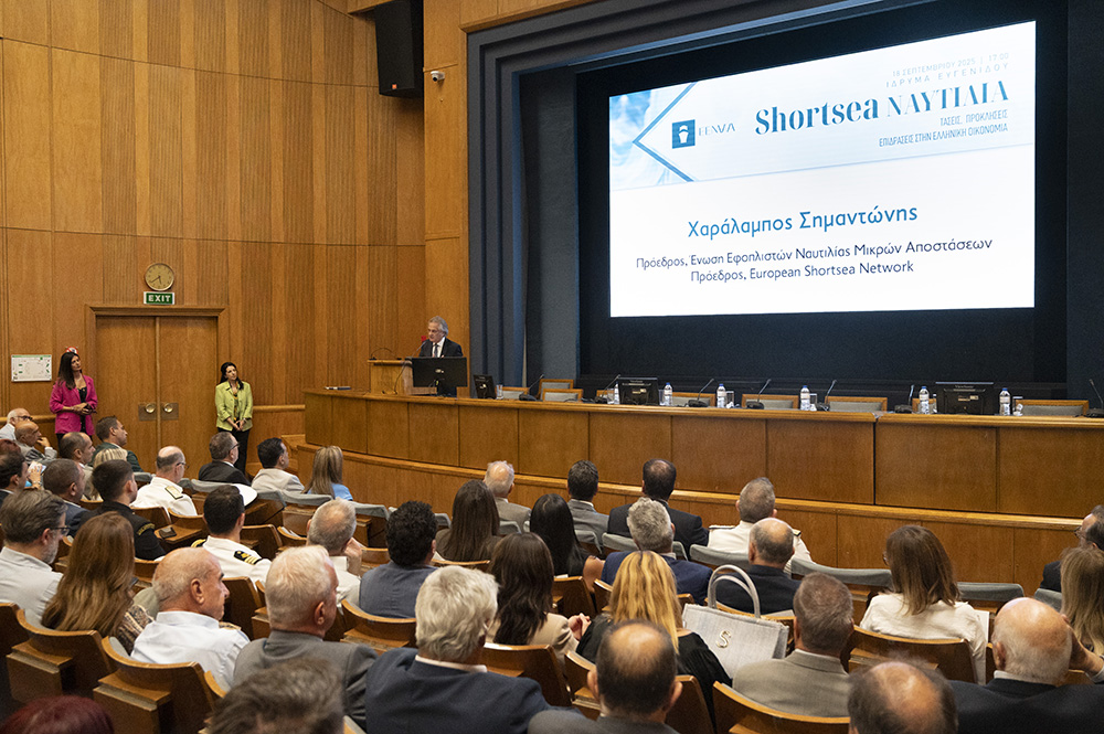 Τα αποτελέσματα της μελέτης «Shortsea Ναυτιλία Εθνικών Μεταφορών: Τάσεις, προκλήσεις και επίδραση στην Ελληνική οικονομία», που εκπόνησε το Ίδρυμα Οικονομικών και Βιομηχανικών Μελετών (ΙΟΒΕ), παρουσίασε σε εκπροσώπους της ναυτιλιακής κοινότητας η Ένωση Εφοπλιστών Ναυτιλίας Μικρών Αποστάσεων (ΕΕΝΜΑ), σε εκδήλωση που πραγματοποιήθηκε την Πέμπτη 18 Σεπτεμβρίου 2025, στο Ίδρυμα Ευγενίδου. Την εκδήλωση τίμησαν με την παρουσία τους εκπρόσωποι της Πολιτείας, της ακαδημαϊκής κοινότητας, του διπλωματικού σώματος, όπως και πολλοί φορείς και οργανισμοί της ναυτιλίας, μεταξύ των οποίων, ο Υπουργός Κλιματικής Κρίσης και Πολιτικής Προστασίας, Γιάννης Κεφαλογιάννης, η Υπουργός Κοινωνικής Συνοχής και Οικογένειας, Δόμνα Μιχαηλίδου, ο Υφυπουργός Ναυτιλίας και Νησιωτικής Πολιτικής, Στέφανος Γκίκας, ο Υφυπουργός Κλιματικής Κρίσης και Πολιτικής Προστασίας, Κώστας Κατσαφάδος, ο Πρόεδρος του Ναυτικού Επιμελητηρίου Ελλάδος, Γιώργος Αλεξανδράτος, η Πρόεδρος της WISTA International και Γενική Γραμματέας της ΕΕΝΜΑ, Έλπη Πετράκη, ο Πρόεδρος του ΕΛΙΝΤ και μέλος ΔΣ της ΕΕΝΜΑ, Νίκος Λιάπης, ο Αρχηγός του Λιμενικού Σώματος-Ελληνικής Ακτοφυλακής, Αντιναύαρχος Τρύφων Κοντιζάς, κ.ά.